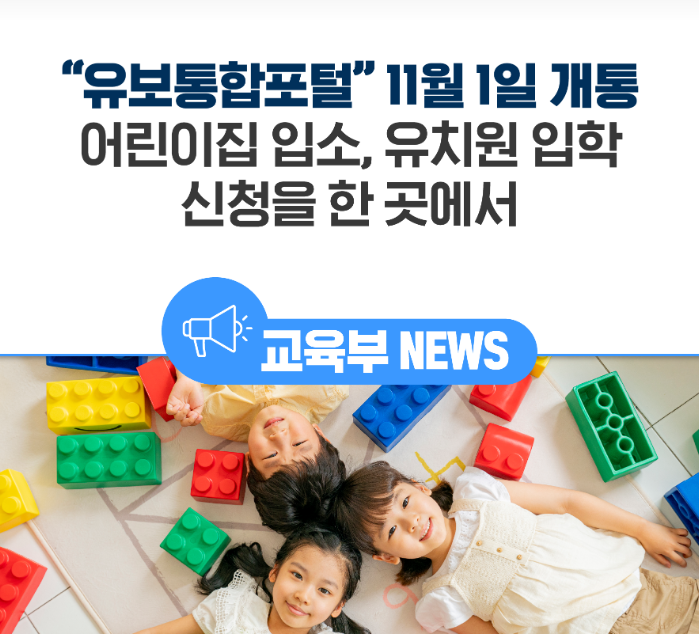 [출처] “유보통합포털” 11월 1일 개통 어린이집 입소, 유치원 입학 신청을 한곳에서| 작성자 교육부