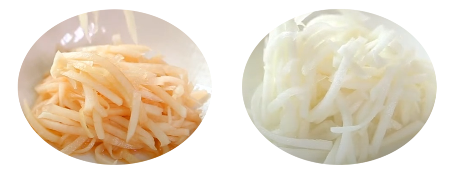 약간 색깔이 들어간 무생채 였는지- 하양 무생채 였는지 가물가물하다.