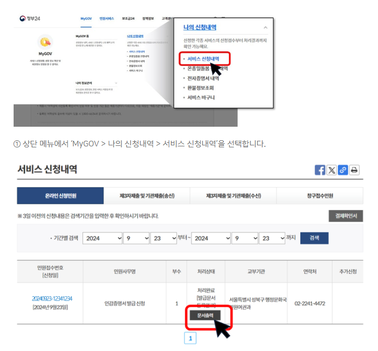 2. 증명서 발급 확인 및 출력