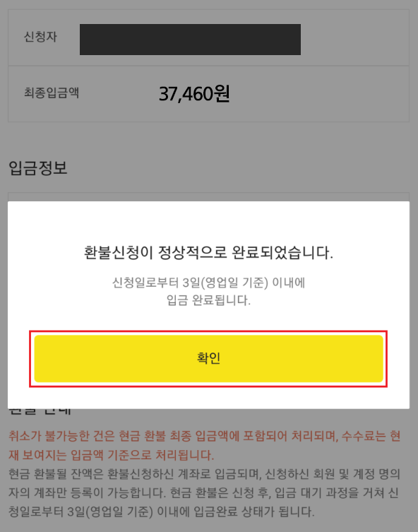 3. 환불머니를 통해 환불 신청 후