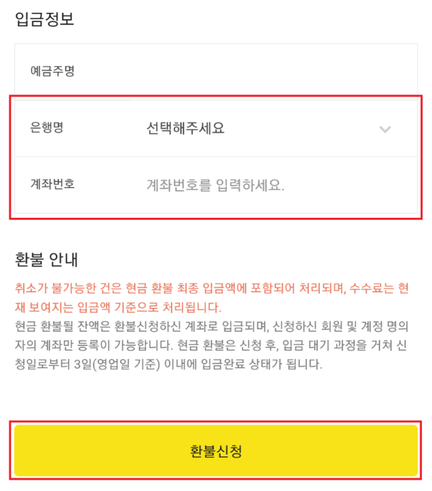 환불받을 계좌를 등록하라고